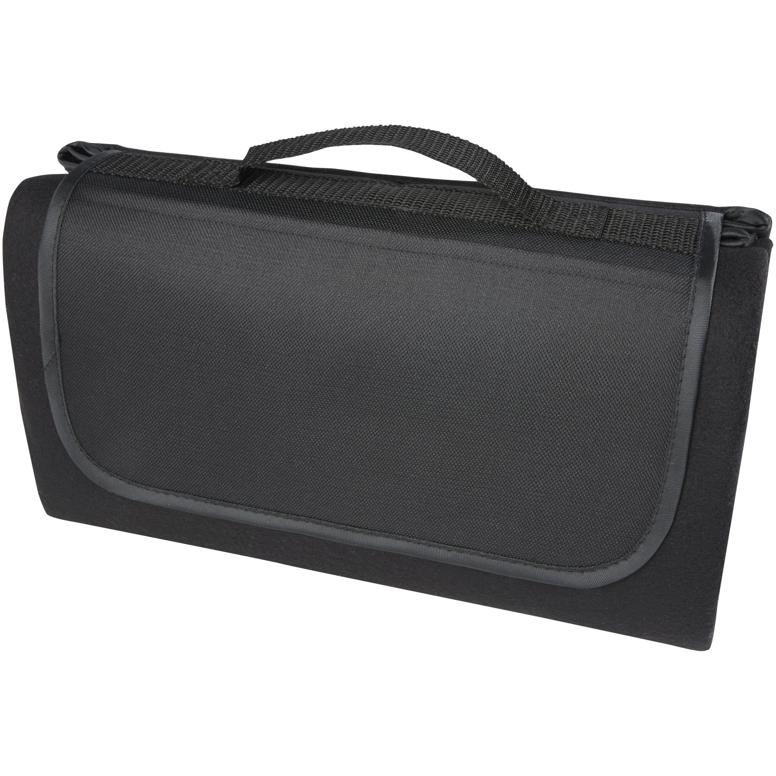 Wasserabweisende Picknickdecke aus recyceltem PET Kunststoff (140 g/m2). Einmal gefaltet und gesichert, lässt sich die Decke mit dem mitgelieferten Tragegriff leicht verstauen und transportieren.
